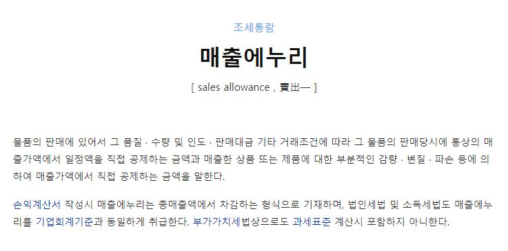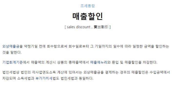 일단 사전적 의미로만 보면 매출 에누리와 매출 할인은 아래와 같이 구분이 됩니다.